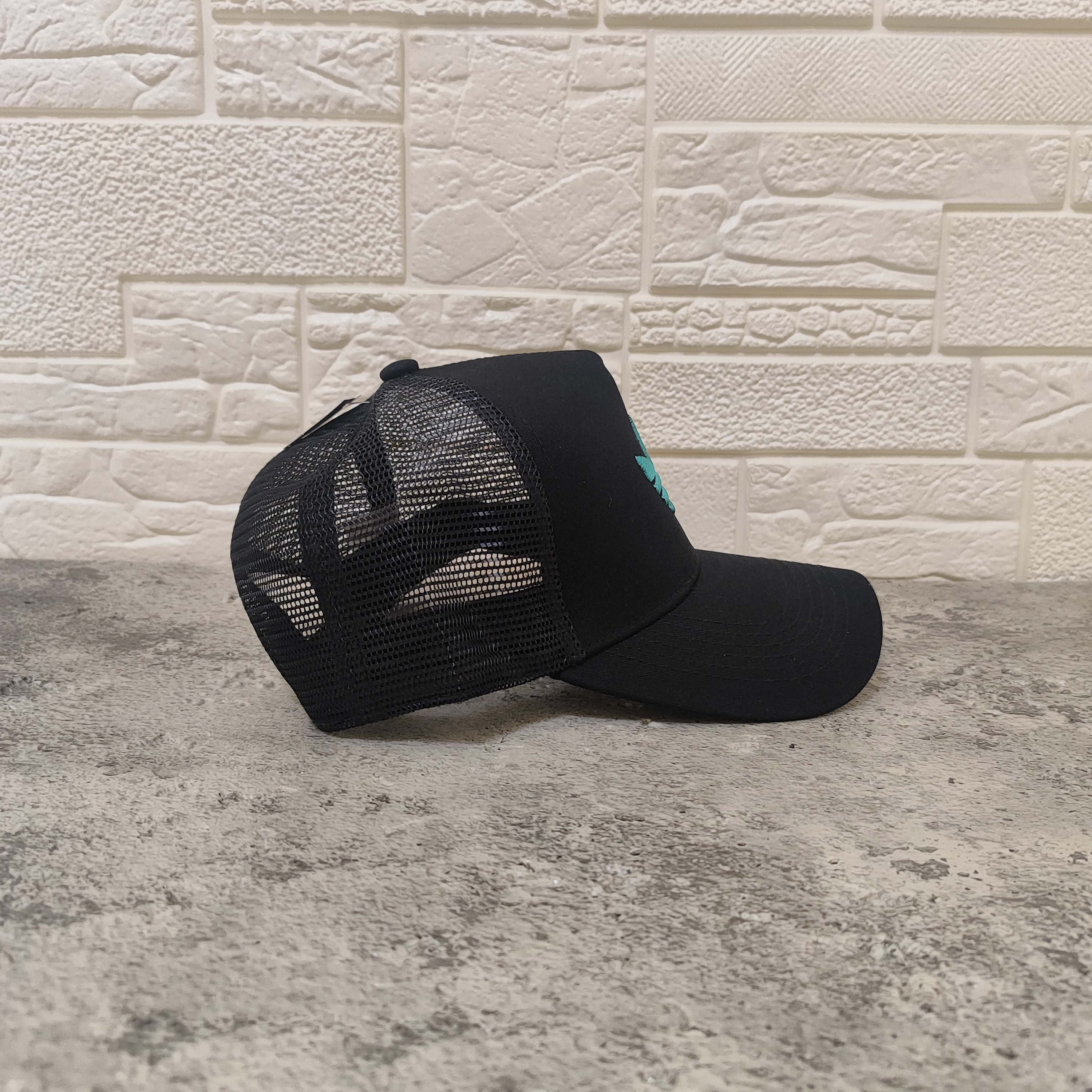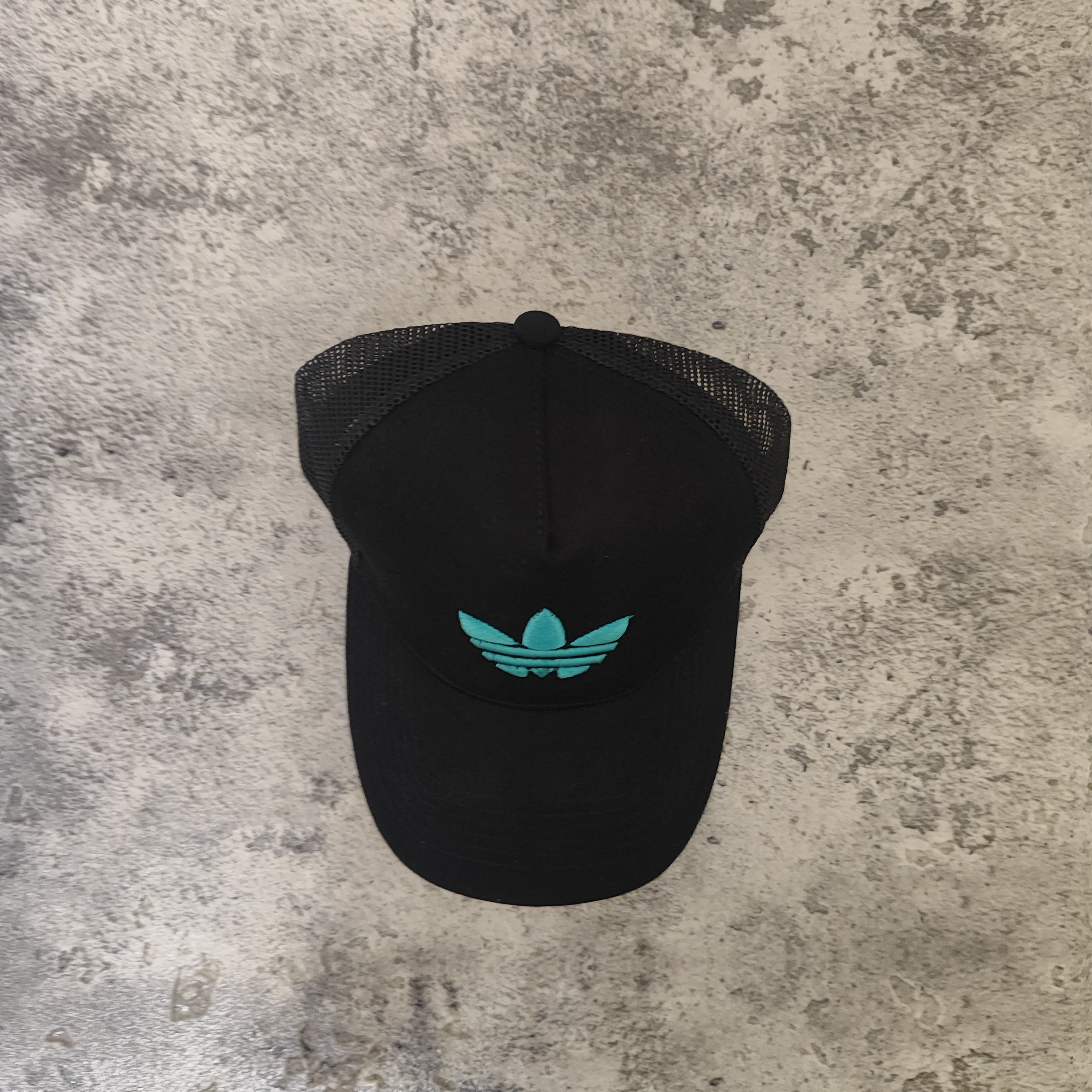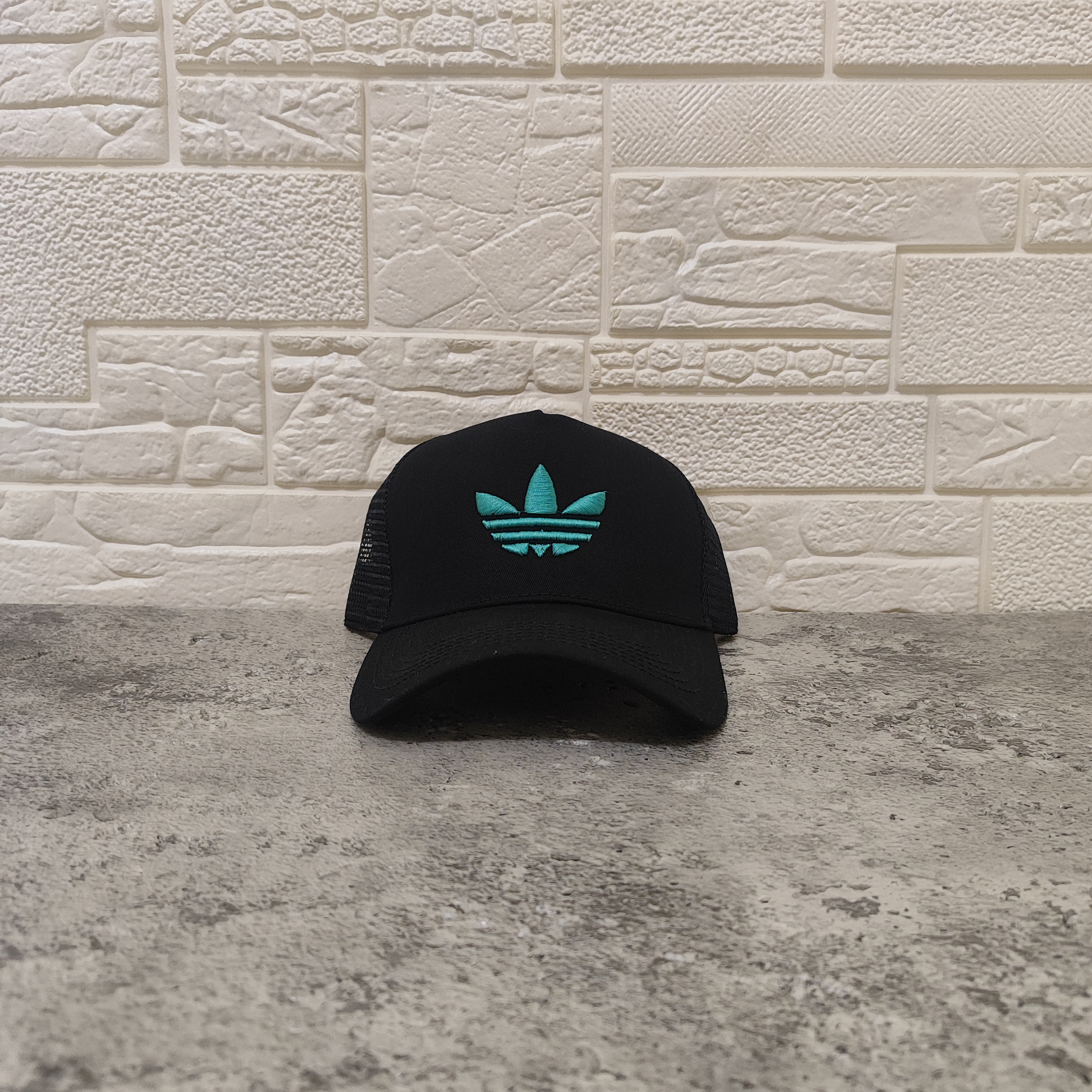 کلاه بیسبالی گلدوزی طرح آدیداس رنگ مشکی و فیروزه ای