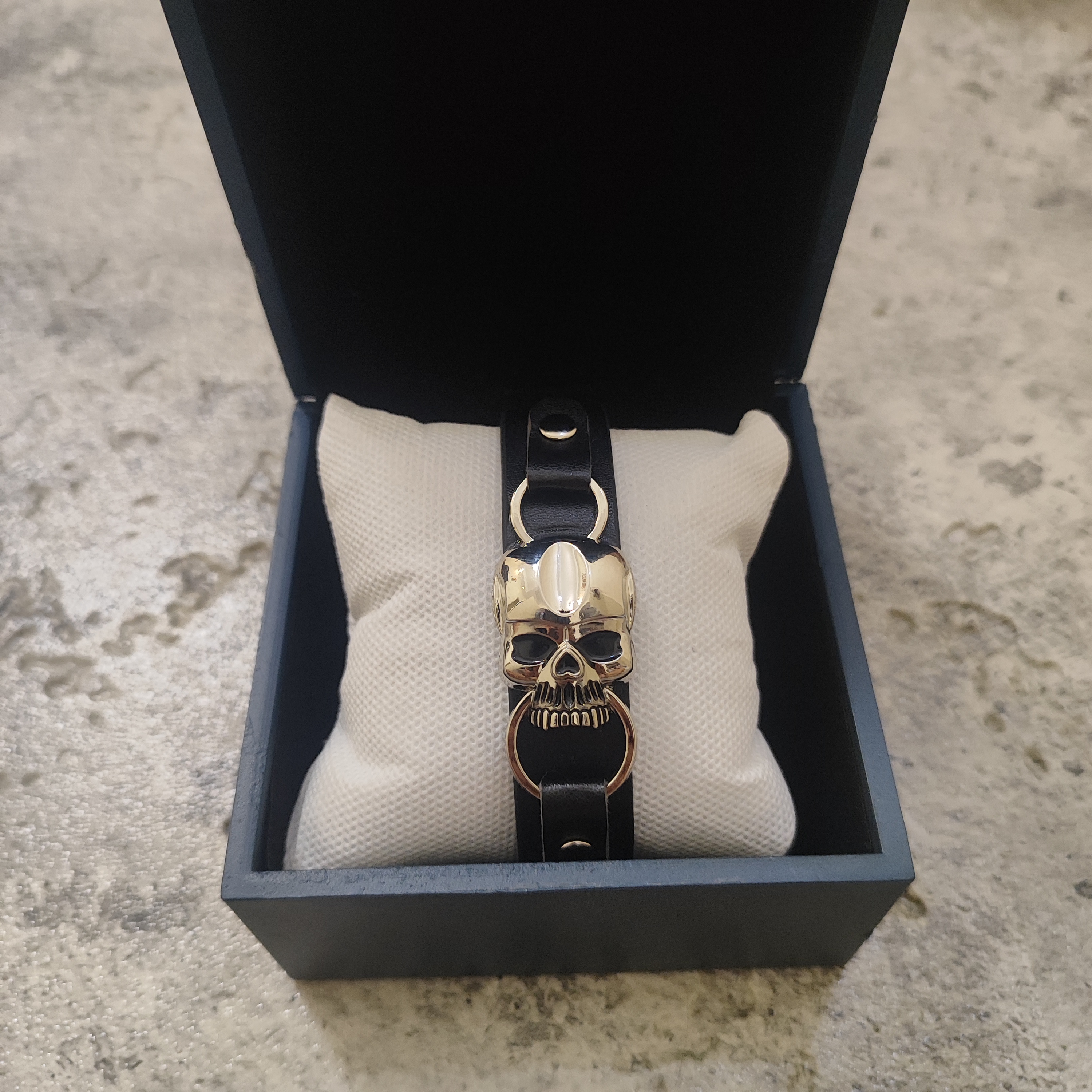 دستبند چرم اسکلتی رنگ مشکی