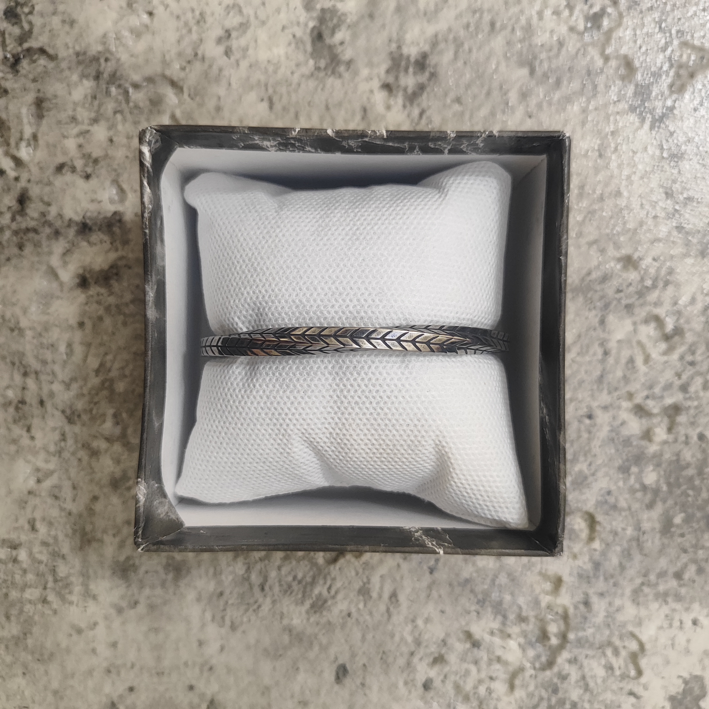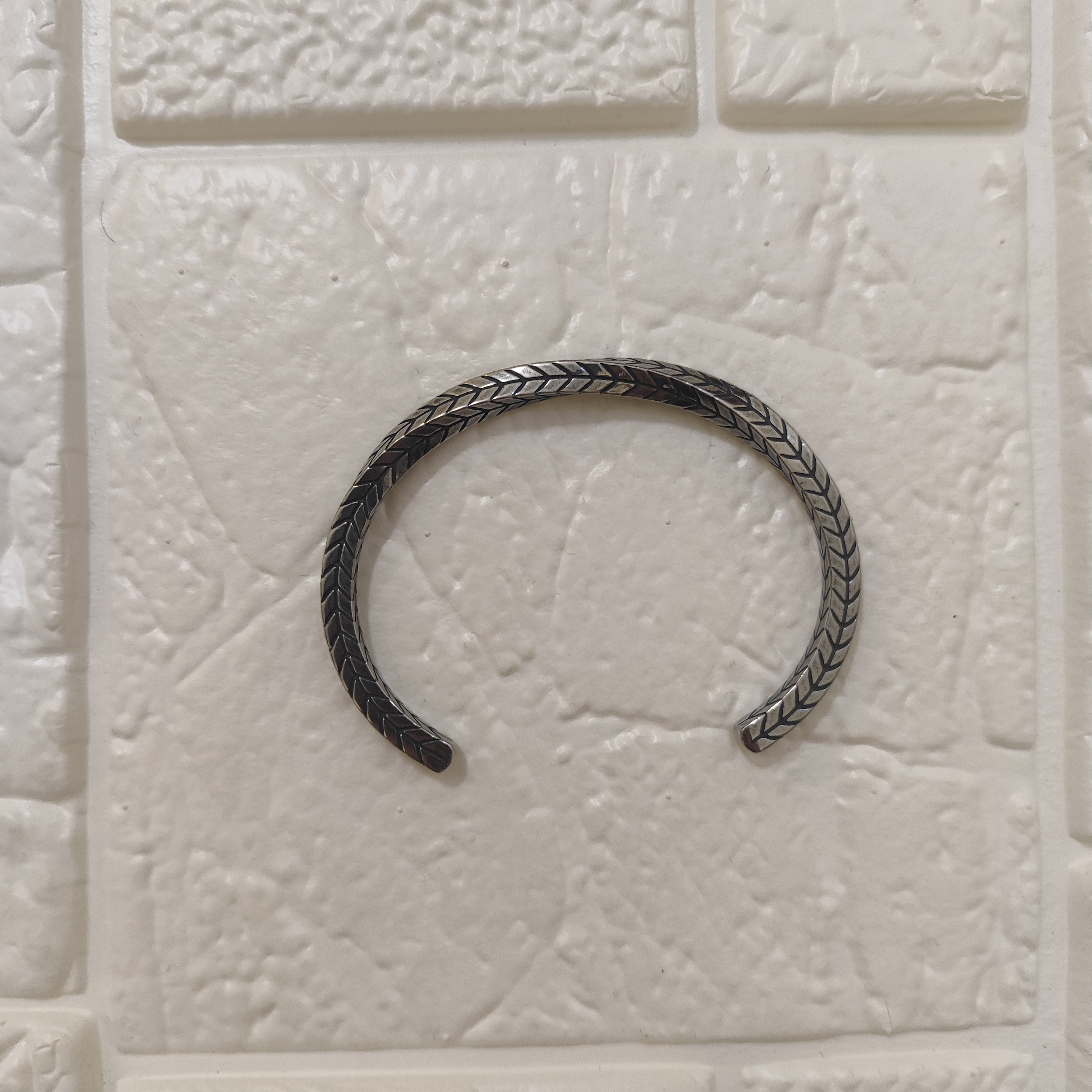 دستبند بنگل مارپیچ سیاه قلم طرح خوشه گندم رنگ silver